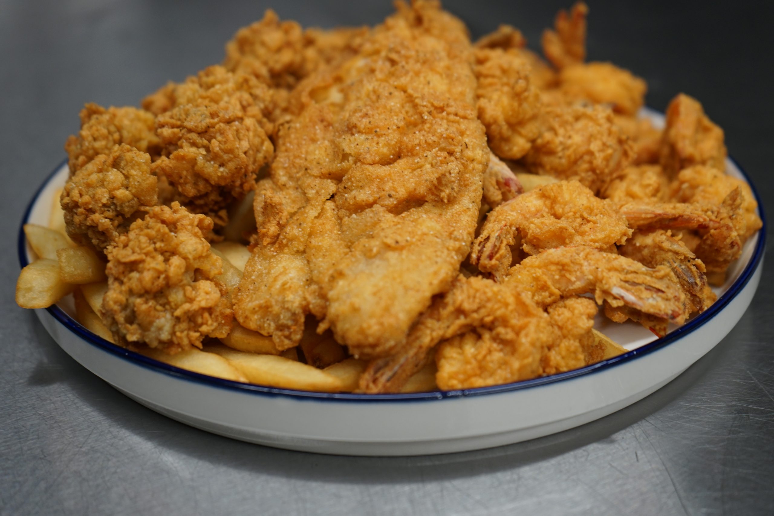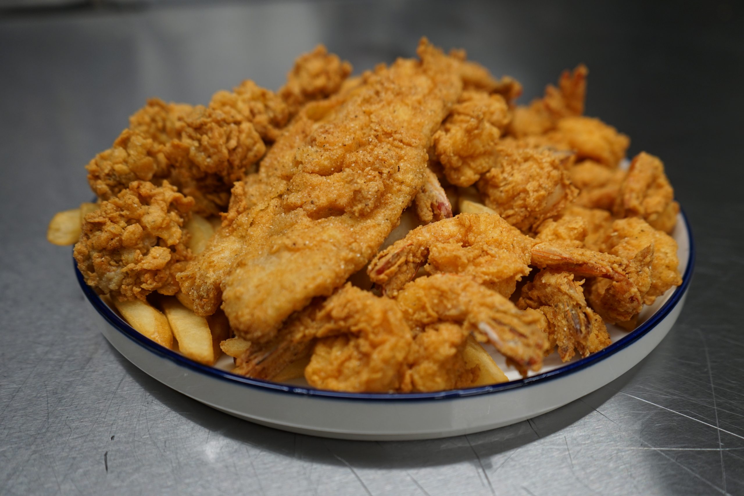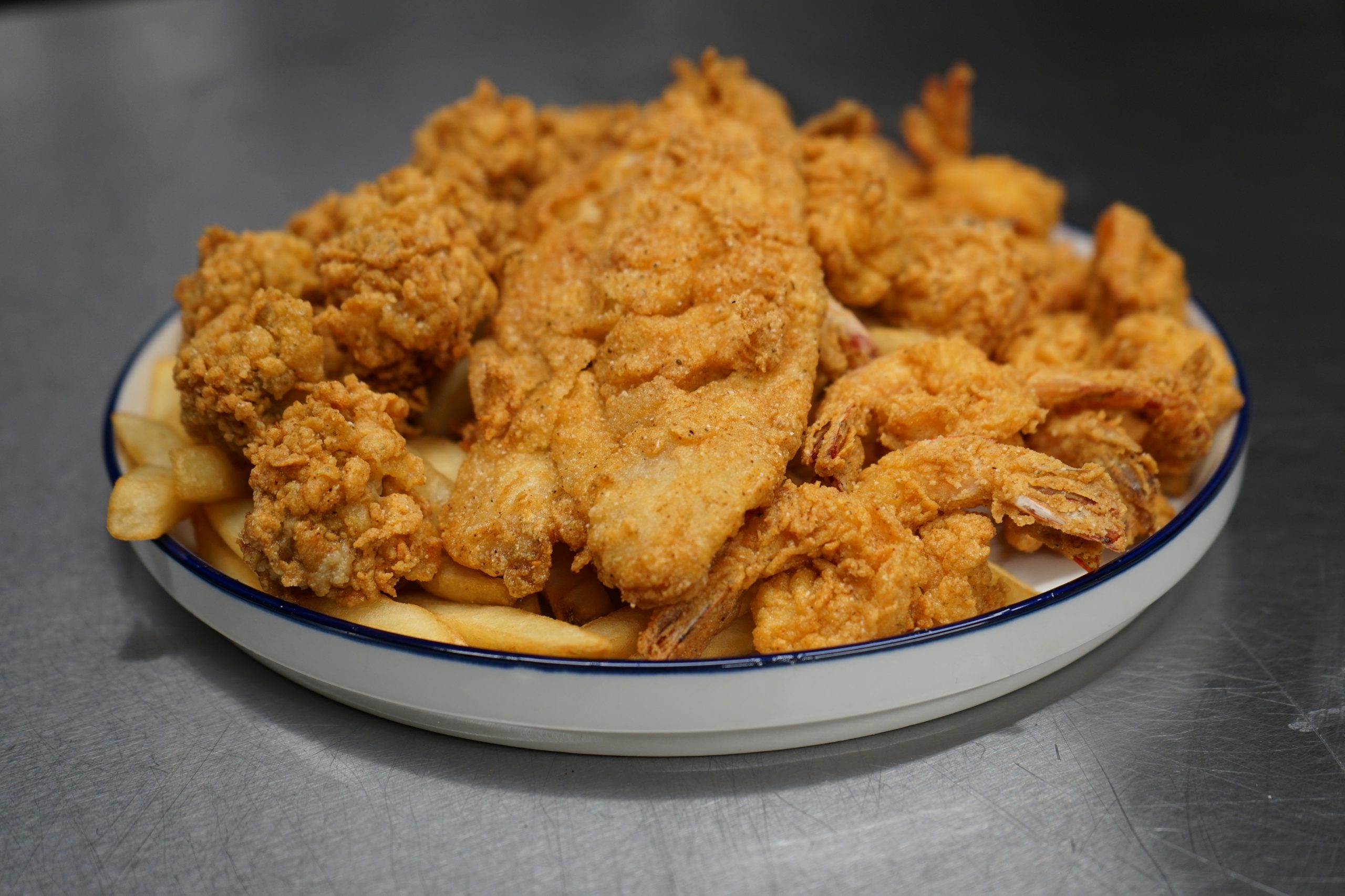 Flavorful jumbo Shrimps, mouthwatering oysters & the catch of the day all fried